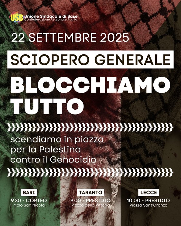Diverse migliaia tra Lavoratrici e Lavoratori, Studentesse e Studenti, Movimenti ed Associazioni hanno risposto alla chiamata di USB riempiendo le piazze e le strade di Bari, Lecce e Taranto e decine…