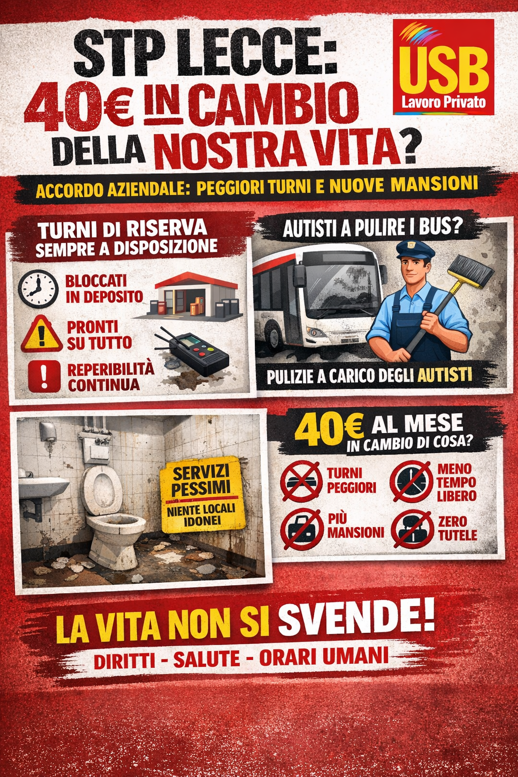 L’intesa nazionale parla di equilibrio tra produttività e vita privata. Qui invece i 40 euro servono a farci accettare: più elasticità nei turni , maggiore presenza obbligata in deposito, disponibilità continua ed estensione delle mansioni